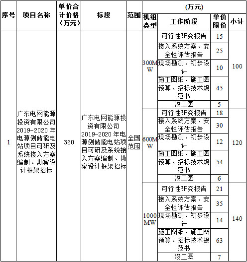 廣東電網(wǎng)能源投資有限公司2019-2020年電源側儲能電站項目可研及系統(tǒng)接入方案編制、勘察設計框架招標開標記錄