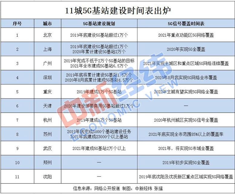 即使是更容易建設(shè)的NSA組網(wǎng),也不是所有人都能用上的——根據(jù)中新經(jīng)緯的統(tǒng)計,僅有少數(shù)城市在2020年前計劃實現(xiàn)5G信號的覆蓋。