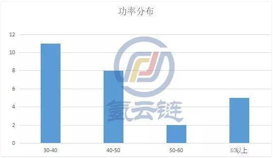 最后,在功率分布方面,30-40Kw的占據(jù)了11款,40-50Kw的也有8款上榜,不過(guò)氫云鏈分析發(fā)現(xiàn),此次上榜的車型有幾款都是321、322等批次公告產(chǎn)品,故而在電堆功率方面,沒(méi)有較大的提升與裝備。