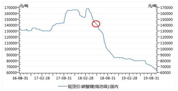 而2018年公司再次啟動收購SQM股權(quán)時,碳酸鋰價格處于14萬元/噸左右的相對高位,且自公告收購意向至今,碳酸鋰價格一路走低跌破7萬元/噸,已出現(xiàn)腰斬。