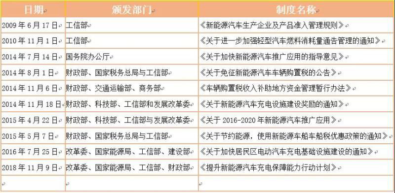 從2009年至2017年,國家相關(guān)機構(gòu)對新能源汽車出臺了一系列扶持政策,涉及稅收優(yōu)惠、充電市場、技術(shù)創(chuàng)新、市場推廣等內(nèi)容,對新能源汽車的健康發(fā)展起到了重要的推動作用。主要政策匯總?cè)缦拢?