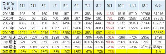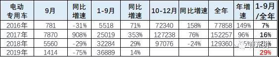 雖然2018年新能源專用車市場(chǎng)走勢(shì)總體13萬(wàn)臺(tái)增速的-15%的表現(xiàn)較弱,但這也是暫時(shí)的影響。2019年9月新能源專用車1414臺(tái)的走勢(shì)相對(duì)較差,但1-9月的新能源專用車的銷量3.7萬(wàn)臺(tái),同比增速29%,年度走勢(shì)仍算很強(qiáng)。