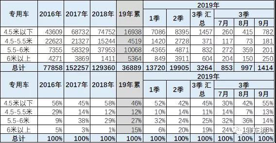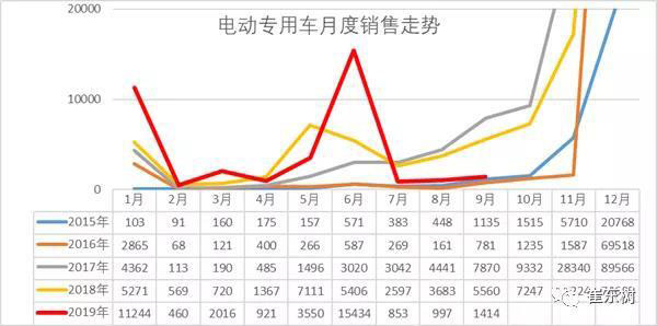 專用車的年初一般較低,但2019年1月的銷量特別高啊,隨后的3月和6月的表現(xiàn)也很強(qiáng),7-9月的走勢(shì)逐步回落。