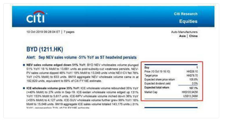 花旗、大和、瑞信銀行等眾多知名券商,均看好比亞迪長(zhǎng)期發(fā)展?jié)摿?,發(fā)布多篇“買入/增持”的研究報(bào)告。