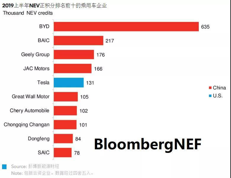特斯拉和大多數(shù)中國(guó)乘用車(chē)企業(yè)產(chǎn)生NEV正積分,但多數(shù)國(guó)際車(chē)企有大量的NEV負(fù)積分,需要購(gòu)買(mǎi)NEV正積分來(lái)抵償歸零。NEV正積分排名前三的企業(yè)為比亞迪、北汽集團(tuán)和吉利,而NEV負(fù)積分排名前三為本田、大眾和豐田。