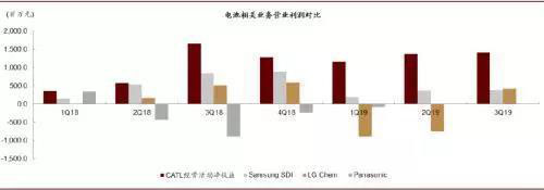 三季度電池業(yè)務(wù)營(yíng)業(yè)利潤(rùn)方面(CATL使用經(jīng)營(yíng)凈收益口徑),CATL、三星SDI及LG Chem營(yíng)業(yè)利潤(rùn)率方面分別達(dá)到11%、3%、3%。