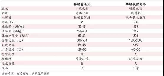 (鉛酸電池和磷酸鐵鋰電池性能對比)