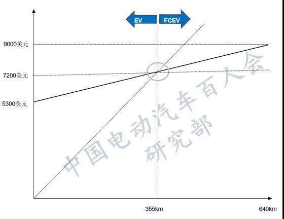 統(tǒng)計口徑2:根據(jù)日本新能源產(chǎn)業(yè)技術(shù)綜合開發(fā)機構(gòu)(NEDO)和美國能源部(DOE)的測算,在355公里里程范圍內(nèi),BEV成本較為明顯,續(xù)駛里程達(dá)到355公里以上,F(xiàn)CV具有明顯的成本優(yōu)勢,在續(xù)駛里程為355公里時燃料電池系統(tǒng)及動力電池系統(tǒng)成本達(dá)到平衡點。