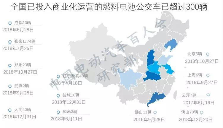 近年來,在國家和地方政策的推動下,各地紛紛開展燃料電池公交、物流車等領(lǐng)域的示范項目,燃料電池汽車得到廣泛推廣和應(yīng)用。據(jù)公開新聞報道,2018年共有13座城市展開燃料電池汽車示范應(yīng)用,涉及公交運營車輛達(dá)到300余輛。