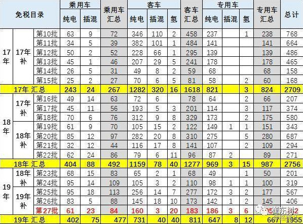 目前的進入補貼目錄車型大部分進入免稅目錄,19年前9批的補貼目錄大部分進入免稅目錄,形成良好的互動效應。第27批免稅目錄中有19年第8-9批補貼目錄最多,也是有利的促進新能源銷售。
