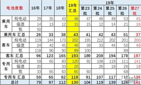 2019年27批純電動專用車的裝載量達到141度,也是高于18年80度的帶電量的。由于目前專用車主要是車型重量的放寬,因此大型化的效果較好。,
