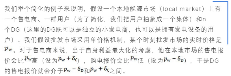 一個可能的解決方案是,在配電網(wǎng)的局部區(qū)域內(nèi)(比如說一個社區(qū))建立一個本地的能源交易平臺,用戶、DG和售電商在上面自由競價。