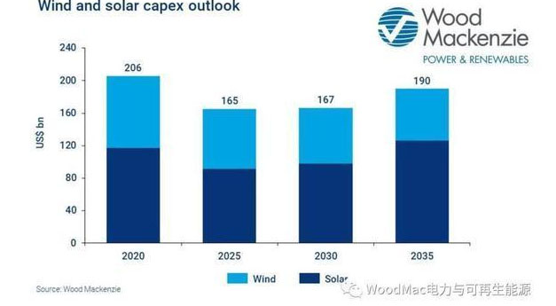 由于風電和光伏發(fā)電作為資產(chǎn)類別的風險性質(zhì),未上市和上市的基金目前在1,900億美元的支出中占約45%。