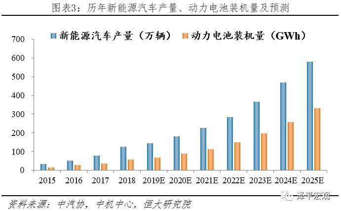 行業(yè)仍有很大發(fā)展空間。按照2025年新能源汽車(chē)產(chǎn)量590萬(wàn)輛測(cè)算,動(dòng)力電池需求量將達(dá)到330.6GWh,相比2018年57.07GWh,對(duì)應(yīng)年復(fù)合增速為28.52%。