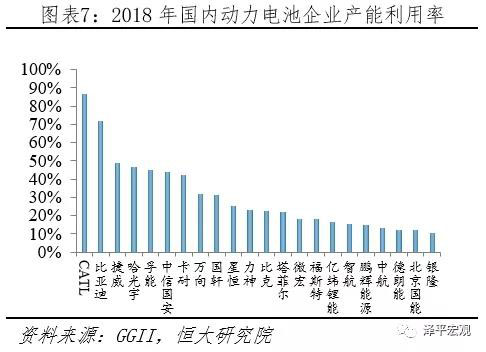 整體產(chǎn)能過(guò)剩,結(jié)構(gòu)性問(wèn)題突出。由于行業(yè)規(guī)模效應(yīng)、政策扶持、資本涌入等因素,我國(guó)動(dòng)力電池產(chǎn)能擴(kuò)張迅猛,當(dāng)前產(chǎn)能?chē)?yán)重過(guò)剩,且高端產(chǎn)能不足、低端產(chǎn)能利用率極低。據(jù)國(guó)家863電動(dòng)車(chē)重大專(zhuān)項(xiàng)動(dòng)力電池測(cè)試中心主任王子冬披露,2018年我國(guó)動(dòng)力電池總產(chǎn)能達(dá)260GWh,銷(xiāo)售僅50GWh。據(jù)GGII統(tǒng)計(jì),2019Q2我國(guó)動(dòng)力電池企業(yè)整體產(chǎn)能利用率只有32.4%,2018年龍頭CATL產(chǎn)能利用率高達(dá)86%,而排名第3的捷威動(dòng)力產(chǎn)能利用率只有49%不到一半,第10名星恒動(dòng)力只有25%。