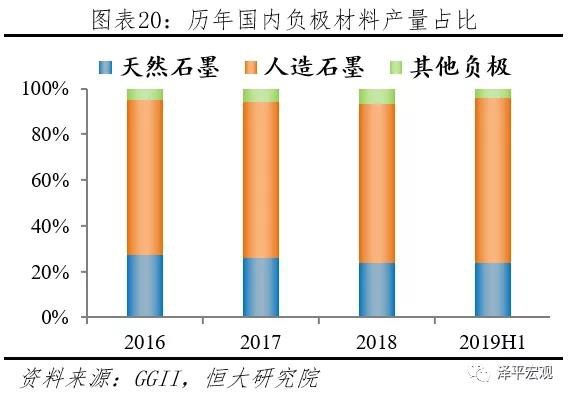 當(dāng)前負(fù)極材料應(yīng)用以人造石墨為主、天然石墨為輔。據(jù)GGII統(tǒng)計(jì),2019上半年我國(guó)人造石墨、天然石墨、其他負(fù)極產(chǎn)量分別為87500、28800、5000噸,對(duì)應(yīng)占比72.14%、23.74%、4.12%,人造石墨占比超過(guò)7成。從趨勢(shì)上看,人造石墨市場(chǎng)占比緩慢提升,從2016年到2019H1增加4.29個(gè)百分點(diǎn)。