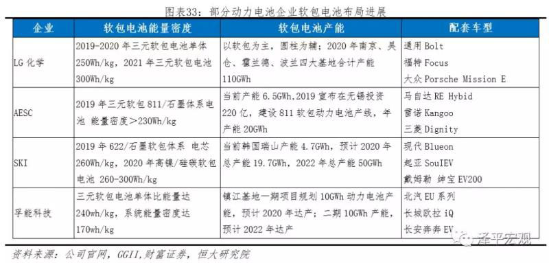 成組效率不佳、成本偏高、產(chǎn)品一致性差等問(wèn)題造成軟包電池商業(yè)化進(jìn)程偏慢,但軟包電池的高能量密度、高安全性、高倍率特性使得軟包具有很大的發(fā)展?jié)摿?。在消費(fèi)領(lǐng)域,軟包電池滲透率就超過(guò)70%。目前全球軟包電池巨頭LG化學(xué)等紛紛擴(kuò)大產(chǎn)能,開(kāi)發(fā)的軟包電池已應(yīng)用于日產(chǎn)、通用、大眾、雷諾、現(xiàn)代、戴姆勒等主流車(chē)企。據(jù)EV sales統(tǒng)計(jì),2018年全球新能源乘用車(chē)銷(xiāo)量TOP10車(chē)型,軟包電池配套占2款;銷(xiāo)量TOP10車(chē)企中7家已采用軟包動(dòng)力電池方案。據(jù)GGII統(tǒng)計(jì),2018年國(guó)內(nèi)新能源乘用車(chē)上軟包動(dòng)力電池裝機(jī)達(dá)5.1GWh,占比15.4%。隨著配套軟包電池新車(chē)型發(fā)布,預(yù)計(jì)軟包未來(lái)市場(chǎng)占比提升。