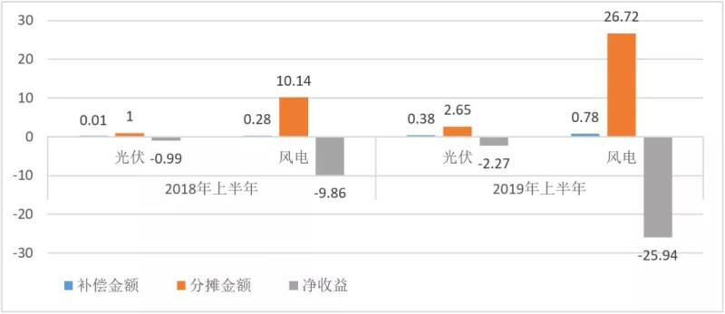 全國光伏、風電電力輔助服務補償費用與分攤情況(億元)