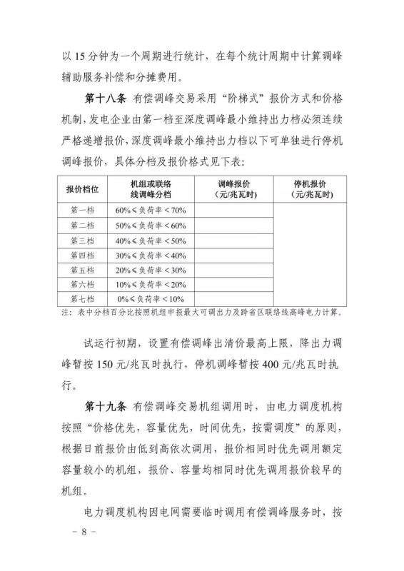這是今年內(nèi)山東能監(jiān)辦對(duì)電力輔助服務(wù)市場(chǎng)運(yùn)行規(guī)則進(jìn)行的第二次修訂。相比2019年3月修訂版,此次修訂版本提高了停機(jī)調(diào)峰出清價(jià)格限值,將其由270元/MWh調(diào)整為400元/MWh。