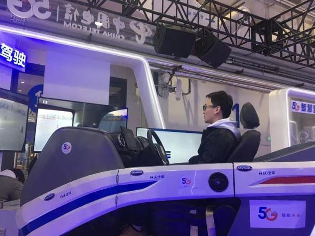 圖為參觀者在體驗智能駕駛