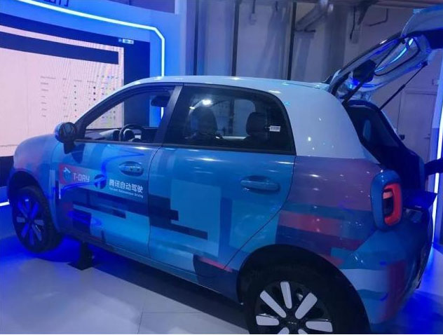 圖為展覽會上的無人駕駛汽車