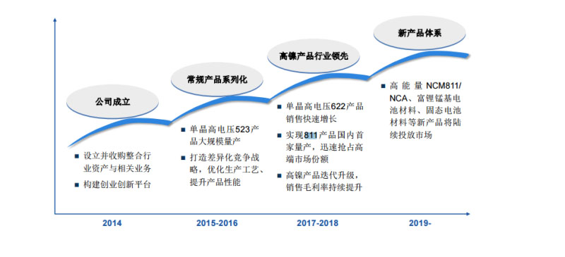 對此,容百科技表示,2016年公司正極材料產(chǎn)品以常規(guī)正極材料為主;2017年實(shí)現(xiàn)了新產(chǎn)品單晶NCM622與NCM811量產(chǎn);2018年高鎳產(chǎn)品成為主推類型。