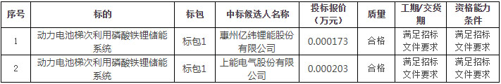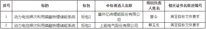 動力電池梯次利用儲能系統(tǒng)框架招標(biāo)項(xiàng)目(二次招標(biāo))中標(biāo)候選人公示