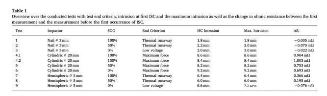 近日,德國慕尼黑應(yīng)用科技大學(xué)的Markus Spielbauer(通訊作者,第一作者)對18650電池在不同的安全測試情況下的交流阻抗特點(diǎn)進(jìn)行了研究分析。研究表明,在針刺測試中,在內(nèi)短路發(fā)生前電池的EIS曲線沒有明顯的變化。在擠壓測試中,電池的歐姆阻抗出現(xiàn)了升高的現(xiàn)象,這可能與擠壓過程中隔膜孔隙率降低和活性物質(zhì)剝落有關(guān)。