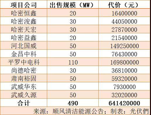 值得一提的是,昨日(11月26日)順風(fēng)清潔能源公告稱,擬以6.41億元出售11個光伏項目全部股權(quán),交易資產(chǎn)包含甘肅200MW、新疆130MW、寧夏110MW、河北50MW,總計為490MW規(guī)模的光伏電站,買方也是中核山東能源。