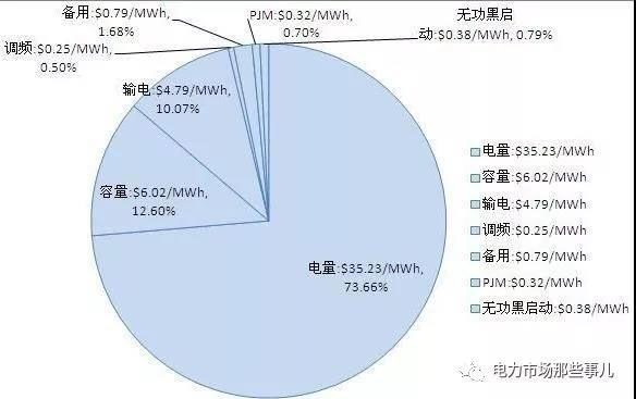 好了,和前面的問題就統(tǒng)一了。我們先看下,美國PJM批發(fā)市場的電價結(jié)構(gòu)[1]: