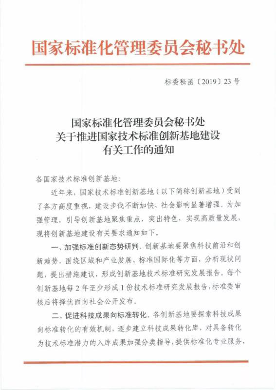 國(guó)家標(biāo)準(zhǔn)化管理委員會(huì):關(guān)于推進(jìn)國(guó)家技術(shù)標(biāo)準(zhǔn)創(chuàng)新基地建設(shè)有關(guān)工作的通知