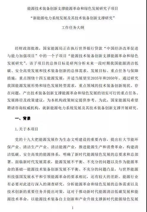 經(jīng)財(cái)政部批準(zhǔn),國(guó)家能源局正在執(zhí)行世界銀行貸款“中國(guó)經(jīng)濟(jì)改革促進(jìn)與能力加強(qiáng)項(xiàng)目”中的一個(gè)子項(xiàng)目“能源技術(shù)裝備創(chuàng)新支撐能源革命和綠色發(fā)展研究”。該子項(xiàng)目的總體目標(biāo)是研判分析未來(lái)一段時(shí)期我國(guó)能源清潔低碳、安全高效發(fā)展和技術(shù)裝備創(chuàng)新的總體需求、發(fā)展目標(biāo)、重點(diǎn)任務(wù)與保障措施,重點(diǎn)圍繞“十四五”能源發(fā)展,并適當(dāng)展望至2035年和2050年。通過(guò)研究我國(guó)能源發(fā)展形勢(shì)和綠色發(fā)展轉(zhuǎn)型需求,重點(diǎn)領(lǐng)域的技術(shù)裝備創(chuàng)新現(xiàn)狀、存在問(wèn)題,提出技術(shù)裝備創(chuàng)新支撐能源革命和綠色發(fā)展的切實(shí)可行的重點(diǎn)任務(wù)、發(fā)展路徑及政策建議,為本機(jī)構(gòu)政策制定提供參考。