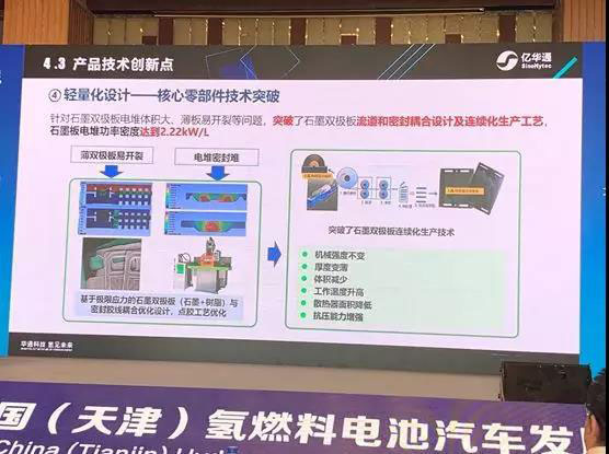 6、輕量化設計——核心零部件技術突破。針對石墨雙極板電堆體積大、薄板易開裂等問題,突破了石墨雙極板流道和密封耦合設計及連續(xù)化生產(chǎn)工藝,石墨板電堆功率密度達到2.22kW/L。