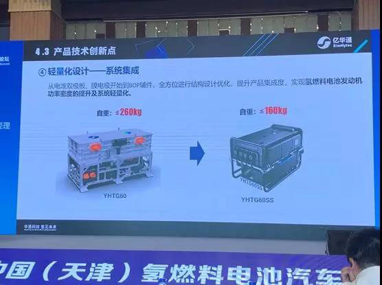 5、輕量化設計——系統(tǒng)集成。YHTG60和YHTG60SS燃料電池系統(tǒng)額定功率相同,但重量從≤260kg降為≤160kg。