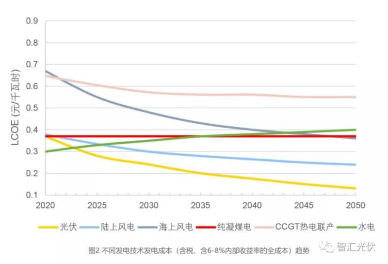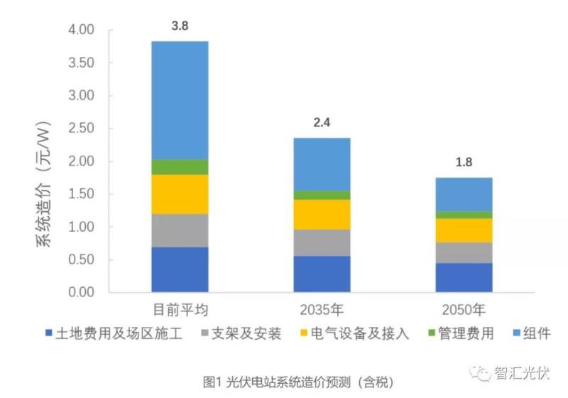 到2035年和2050年新增光伏發(fā)電成本相比當(dāng)前預(yù)計(jì)約下降50%和70%,達(dá)到0.2元/kWh和0.13元/kWh。