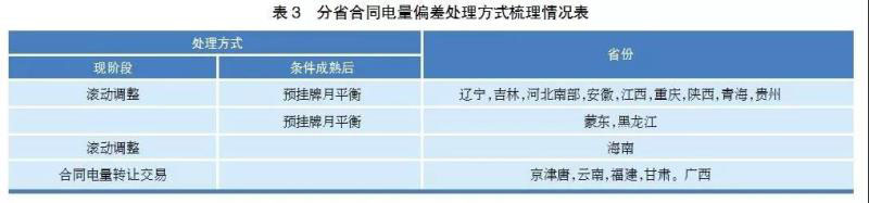 對(duì)合同電量偏差處理,各省根據(jù)市場(chǎng)化電量份額的不同處理方式不盡相同。市場(chǎng)化電量份額達(dá)到一定比例時(shí),主要采用預(yù)掛牌月平衡偏差方式,市場(chǎng)化初級(jí)階段則主要采用滾動(dòng)調(diào)整方式、合同電量轉(zhuǎn)讓交易方式等。