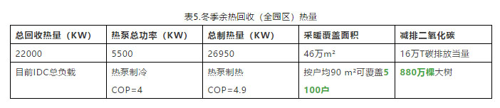 2. 回收騰訊天津數(shù)據(jù)中心冬季全部余熱,熱量用于采暖可覆蓋的面積達(dá)到46萬平方米,如果用于家庭采暖,可滿足5100多戶居民的用熱需求。減排二氧化碳量達(dá)16萬噸,碳排放當(dāng)量約為種植880萬棵大樹,有效減少地球不可再生能源的消耗。