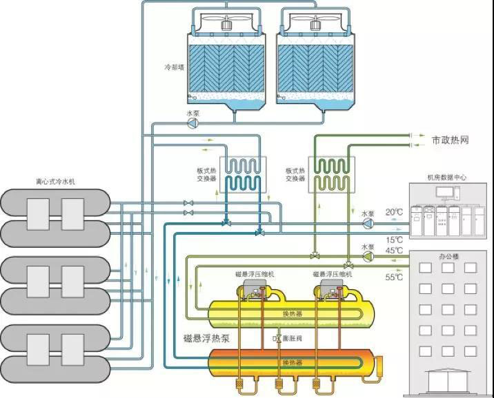 圖1.騰訊天津數(shù)據(jù)中心余熱回收系統(tǒng)圖