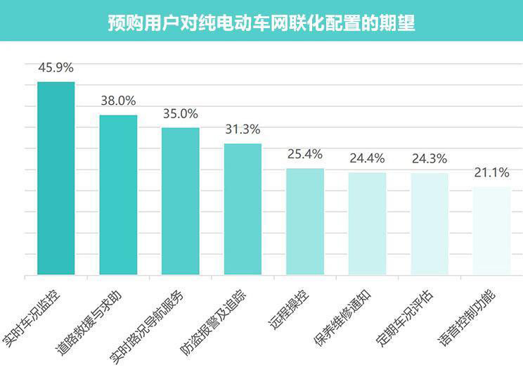 隨著時(shí)間的遷移,如今,90后逐漸成為汽車消費(fèi)主力,因此,預(yù)購(gòu)用戶體現(xiàn)出對(duì)網(wǎng)聯(lián)化配置的高期望。而隨著5G技術(shù)的進(jìn)一步發(fā)展和商業(yè)化落地,萬(wàn)物互聯(lián)的時(shí)代即將開啟。汽車將不再僅僅是代步交通工具的角色,更是另一種生活方式,甚至是車主個(gè)性的體現(xiàn)。因此,未來(lái)網(wǎng)聯(lián)化、智能化科技配置的豐富程度,將在很大程度上左右用戶的購(gòu)車決策。據(jù)汽車之家調(diào)研大數(shù)據(jù)顯示,預(yù)購(gòu)用戶最期望的網(wǎng)聯(lián)化配置為實(shí)時(shí)車況監(jiān)控,占比45.9%,而最期望的智能化功能則是自動(dòng)緊急剎車,占比44.3%。