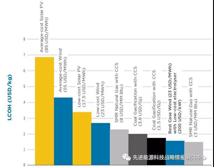 圖2 各種制氫技術(shù)成本現(xiàn)狀(單位:美元/kg)