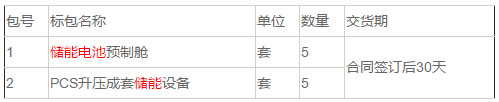 中國(guó)儲(chǔ)能網(wǎng)訊:平高集團(tuán)有限公司2019年-2020年儲(chǔ)能項(xiàng)目第一批-成套設(shè)備類(lèi)(天津項(xiàng)目)進(jìn)行招標(biāo),擬采購(gòu)儲(chǔ)能電池預(yù)制艙5套和PCS升壓成套儲(chǔ)能設(shè)備5套。詳情如下: