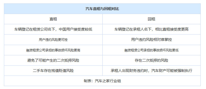 相對(duì)而言,直租上牌在公司名下,風(fēng)險(xiǎn)更可控,消費(fèi)者違約時(shí)收車(chē)也不存在法律風(fēng)險(xiǎn),所以直租的首付要求可以更低,并且可以通過(guò)規(guī)?;少?gòu)車(chē)輛獲取差價(jià),但與此同時(shí),公司也可能承擔(dān)相應(yīng)的車(chē)輛違章風(fēng)險(xiǎn)以及車(chē)價(jià)損失。