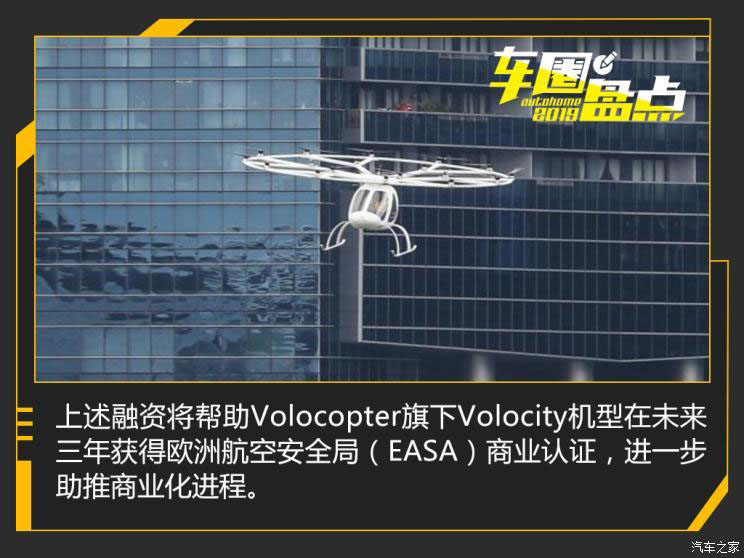 地面已經(jīng)不能滿足車企需求,他們把眼光看向了天空。今年9月,德國(guó)城市空中出行公司Volocopter宣布,獲得由吉利控股集團(tuán)領(lǐng)投、戴姆勒股份公司參投的C輪融資5000萬(wàn)歐元,目前Volocopter已累計(jì)獲得8500萬(wàn)歐元融資。
