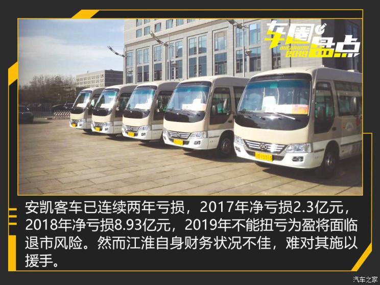 對(duì)于江淮汽車(chē)來(lái)說(shuō),其2018年扣非凈利潤(rùn)為-18.8億元,2019年前三季度扣非凈利潤(rùn)-0.8億元,雖然虧損有所收窄,但拯救安凱客車(chē)于水火怕仍有難度。不過(guò)江淮汽車(chē)今年很可能扭虧為盈,因安徽合肥當(dāng)?shù)卣魇樟私雌?chē)兩棟職工公寓樓,將獲得政府補(bǔ)償拆遷款2.1億元。江淮汽車(chē)9月19日公告稱(chēng),拆遷款預(yù)計(jì)增加公司2019年度凈利潤(rùn)2億元左右。