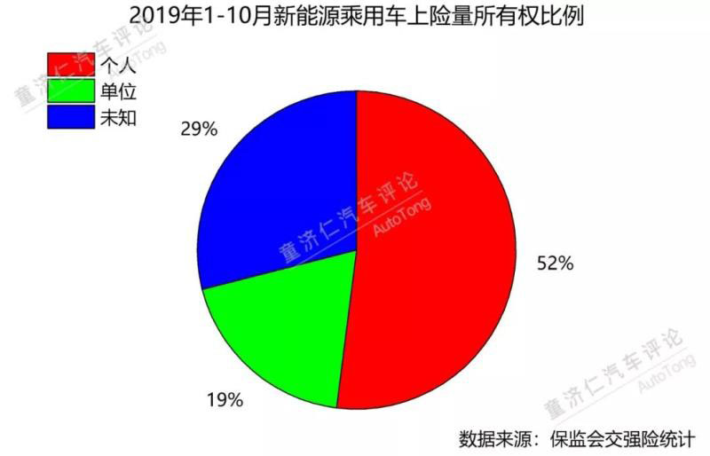 根據(jù)保監(jiān)會的交強(qiáng)險數(shù)據(jù),今年1-10月,新能源汽車?yán)塾?jì)上險量為71.3萬輛,其中37.1萬輛上險量所有權(quán)為“個人”,占總量的52%。另外,除了19%的上險量所有權(quán)為“單位”外,還有29%為未知。