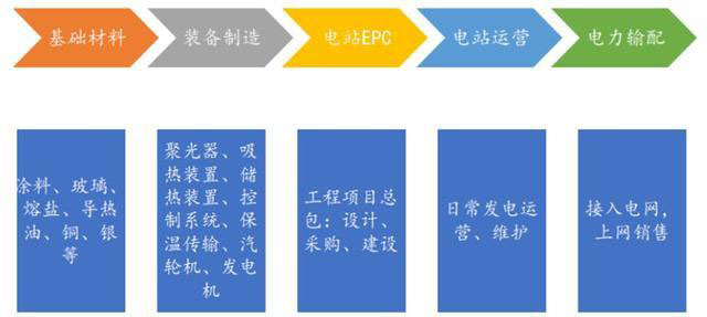 光熱和光伏發(fā)電的原理不同,兩者的產(chǎn)業(yè)鏈也截然不同。光熱發(fā)電產(chǎn)業(yè)與傳統(tǒng)火電的產(chǎn)業(yè)鏈高度相關(guān),而光伏發(fā)電產(chǎn)業(yè)則與硅料的應(yīng)用開發(fā)為核心。