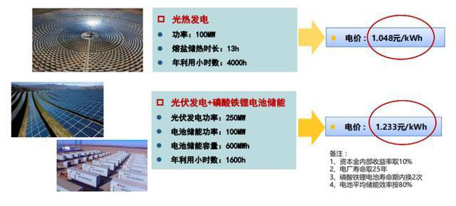 注:光熱發(fā)電聚光用的是定日鏡,光伏發(fā)電用的是太陽能電池組件。