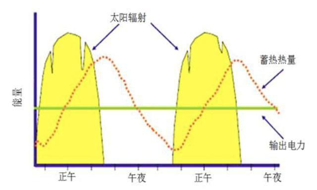 光熱發(fā)電是穩(wěn)定的電網(wǎng)友好型電源。光熱發(fā)電配置儲熱系統(tǒng),能夠?qū)⒁徊糠痔柲苻D(zhuǎn)化成熱能儲存起來,在夜間或者白天陽光被云層遮擋的時候可以用儲熱系統(tǒng)中的熱能發(fā)電,保持穩(wěn)定的電力輸出。因此,采用成熟的儲熱技術(shù)后光熱發(fā)電可以實(shí)現(xiàn)全天24小時穩(wěn)定持續(xù)供電。