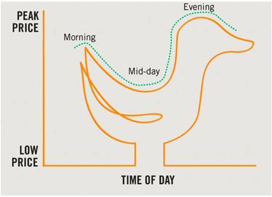 光伏發(fā)電受太陽能自然屬性和儲電裝備技術(shù)滯后的雙重影響,具有隨機(jī)性、波動性等特點(diǎn)。光伏發(fā)電在中午達(dá)到高峰,傍晚隨著太陽落山而停止發(fā)電,但是晚上的電力需求卻急劇上升。光伏發(fā)電的大量應(yīng)用會導(dǎo)致電網(wǎng)內(nèi)其他發(fā)電方式(以火電為主)的供電量曲線急劇波動,該曲線由于形似鴨子而被稱為“鴨子曲線”。光伏發(fā)電的不穩(wěn)定性對電網(wǎng)供電電壓、供電質(zhì)量、繼電保護(hù)及電網(wǎng)調(diào)節(jié)能力造成較大沖擊。因此,光伏發(fā)電尚無法大規(guī)模接入電力系統(tǒng),造成了嚴(yán)重的“棄光”問題。