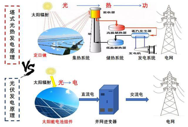 光熱發(fā)電的實(shí)質(zhì)是“光—熱—功”轉(zhuǎn)化,光伏的發(fā)電的實(shí)質(zhì)是“光—電”轉(zhuǎn)化,兩者發(fā)電的原理截然不同。